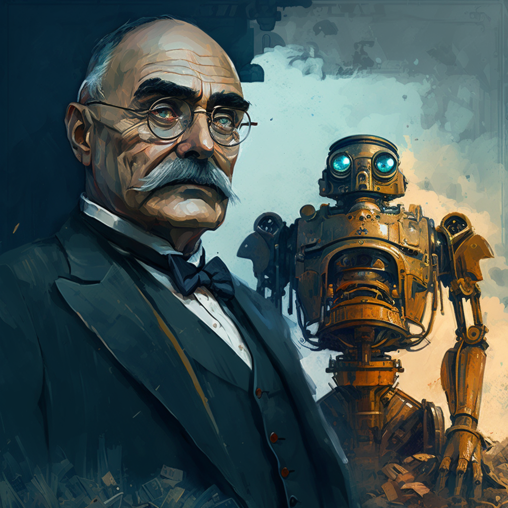 Редьярд Киплинг и андроид с искусственным интеллектом. Генерация нейросети Midjourney
