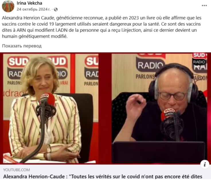 Научным консультантом НПО Terre à Vie представляется некая профессор генетики в ENSA — Университете сельского хозяйства в Сенегале, — Ирина Векча. Ее аккаунт в Facebook создан в апреле 2024 года. Практически все посты посвящены критике генного драйва, ГМО и проектов, финансируемых Биллом Гейтсом. Несмотря на статус ученого, Векча также распространяет явную дезинформацию, например, об опасности для здоровья вакцин от COVID-19 и том, что они модифицируют ДНК людей. Также она автор большого количества статей об опасности генного драйва в блогах неправительственных организаций. Связаться с ней для получения комментариев не удалось, в ENSA на запрос также не ответили.